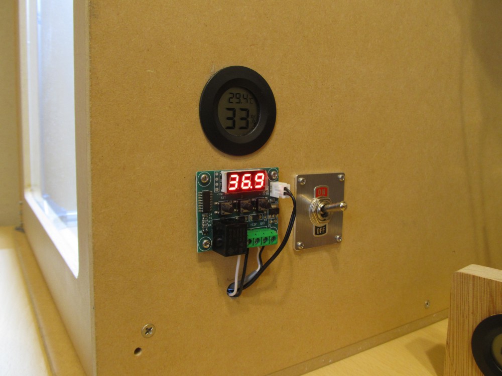 エンクロージャー内があまり熱くなると3Dプリンタ―内部の回路などに悪影響がありそうなので、庫内はちょっと暑いくらいにしておきたいです。