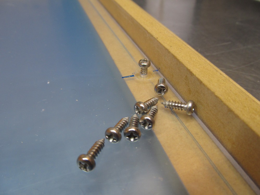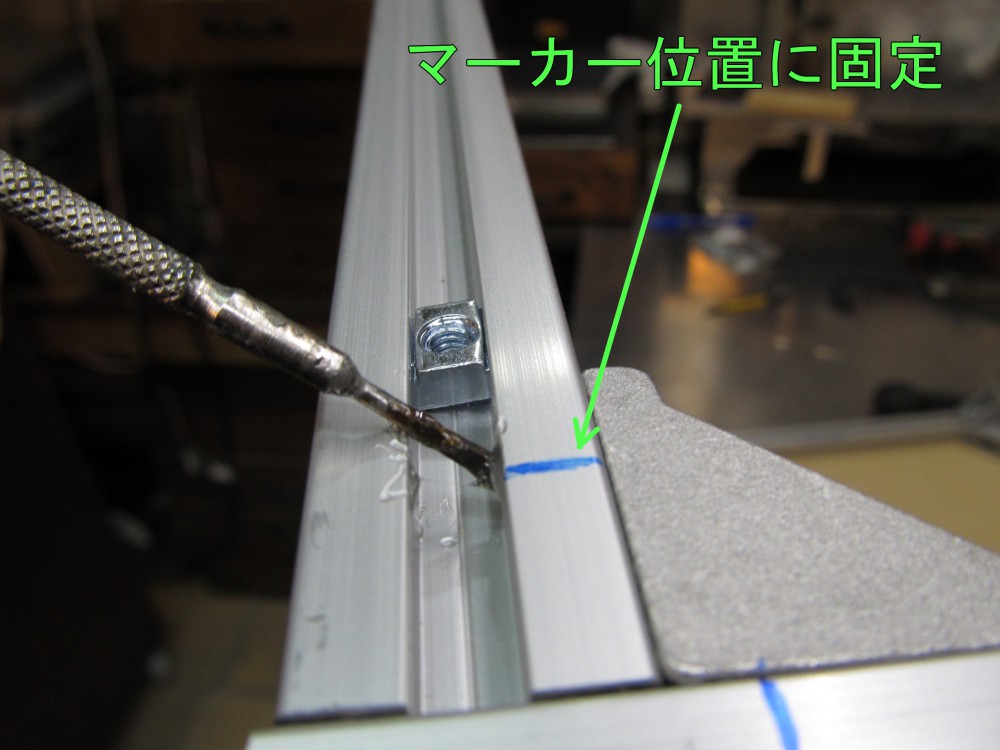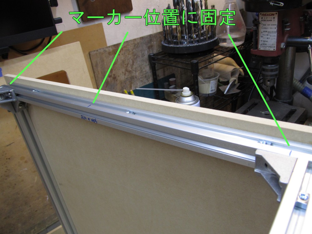 このアルミフレームへのネジ止めは「滑らかに移動するスライドナット」を使用するためちょっと大変。 MDFボードの穴に合わせて正確に固定しておかないとナットが移動してしまいネジ止めできません。
