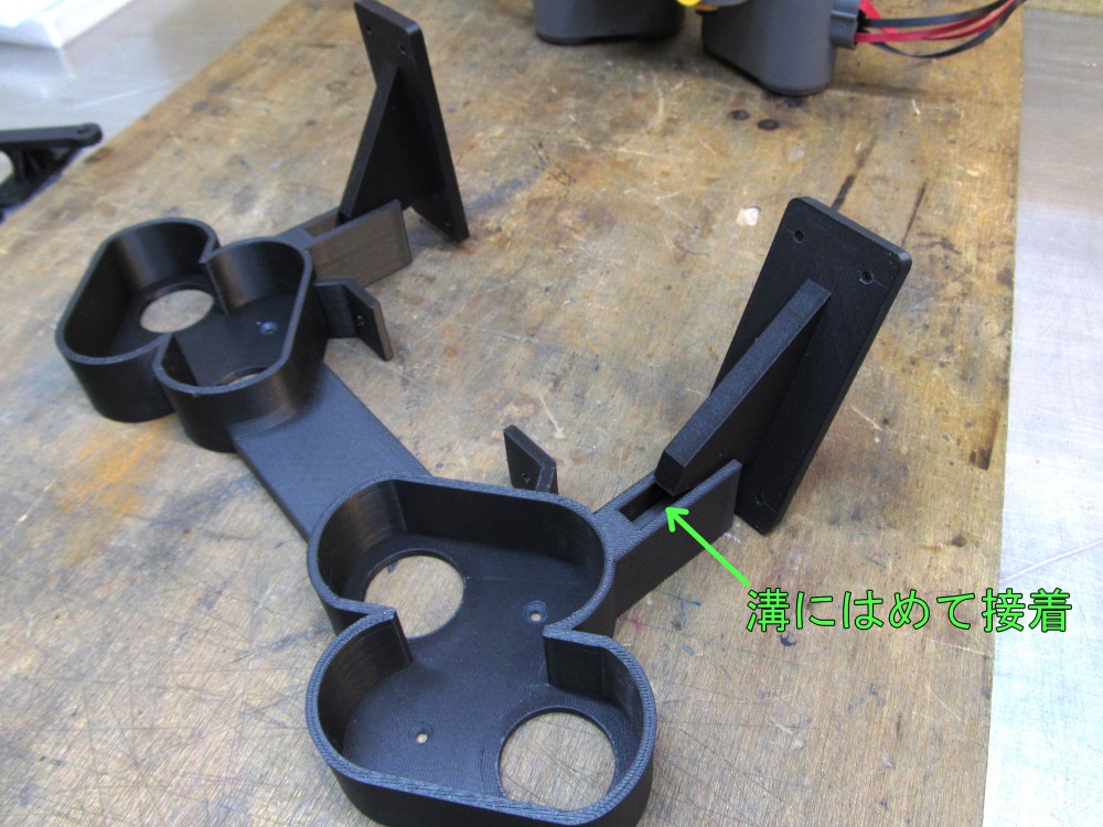 フィーダユニットを載せる黒いパーツは2分割で印刷しました。 積層方向を考慮すると一体で印刷した場合強度が心配なので。