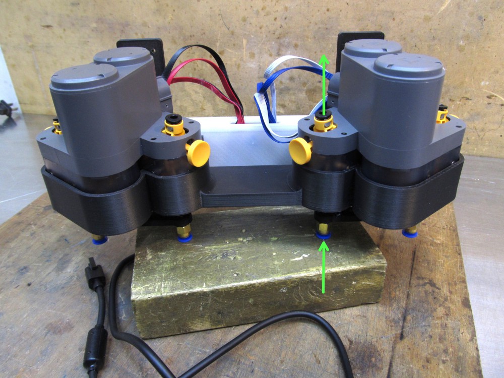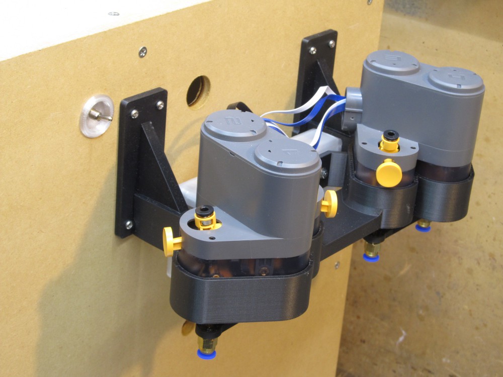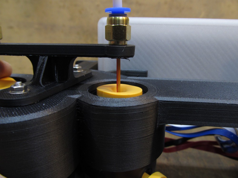 フィラメント供給口も設計どおりに納まります。 青いワンタッチ継手からフィラメントが入ります。