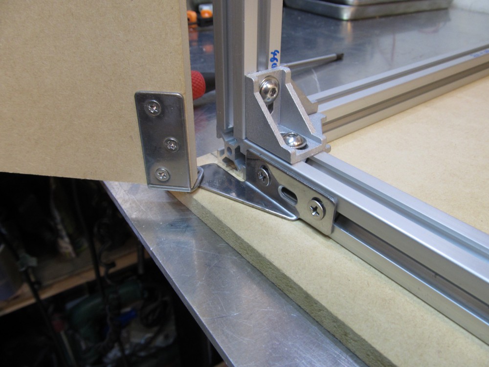 アルミフレーム(20×20)で枠を作り、これに板材をネジ止めしています。