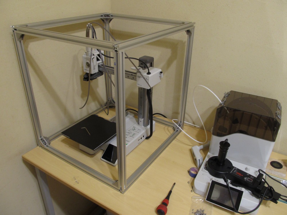 (同時に購入したもう一台の3Dプリンタ―はエンクロージャーと一体になっており庫内を60℃くらいまで加熱出来ます。)