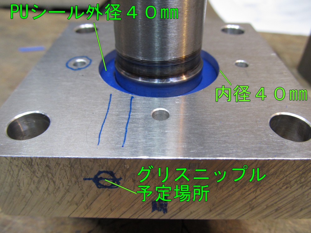 たまたま偶然ベアリングホルダー上部の穴径が40㎜でしたのでよかったです。(ここの穴径は適当でよいので40㎜ジャストにする必要はありませんでした。)