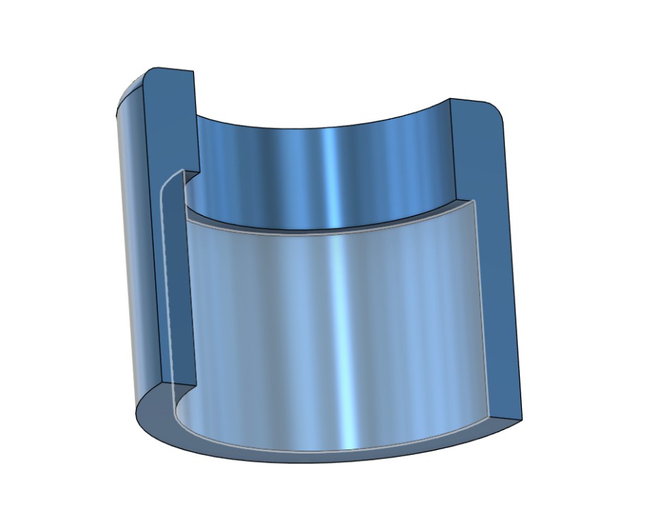 主軸にハマる形状の黒い筒を3Dプリンタ―で印刷しました。 出来るだけピッタリとフィットさせたいなあと思いちゃんとノギスで計って内側はこんな形状になっています。