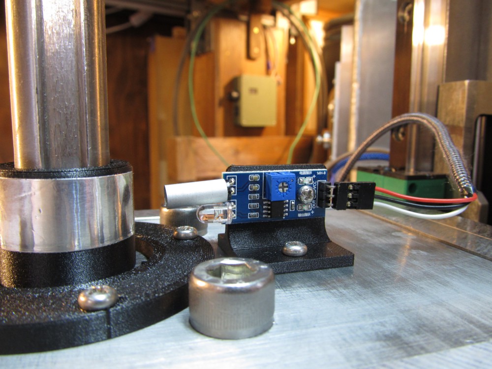 フォトダイオードにアルミの筒がかぶっていますが、あった方が外部からの他の光に邪魔されないのか感度調整がしやすかったので付けています。なくても動作はします。