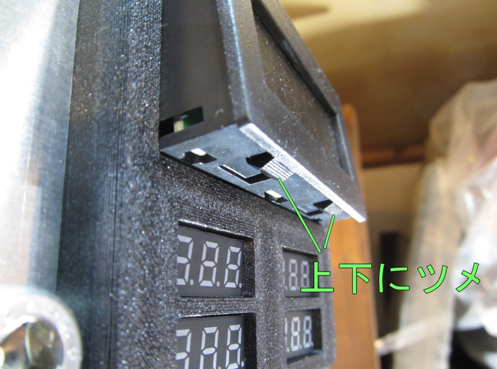 回転計の上下には爪がありますのでその分ちょっと広めにしてあります。あまりキツクしたくなかったので1㎜程広くしました。