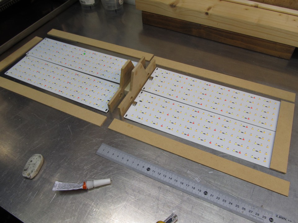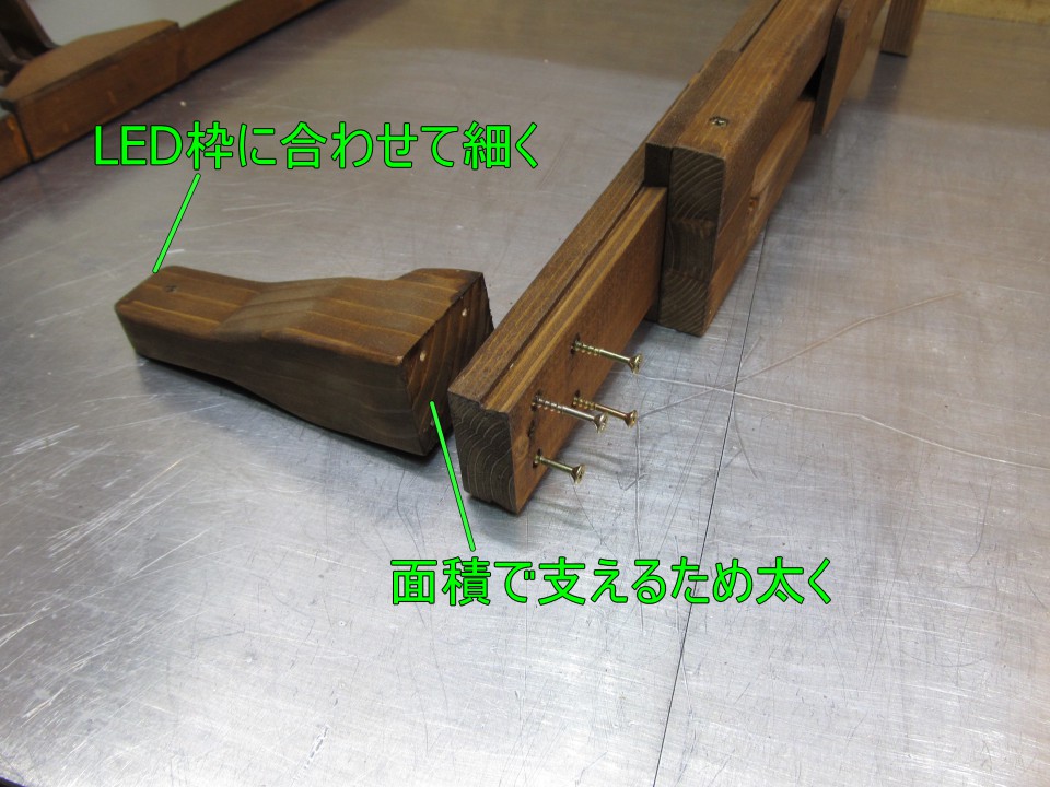「長さが足りないので継ぎはぎ」「強度が足りないのでコーナーを補強」と行き当たりばったりの工作で何とかLED用枠が完成。
