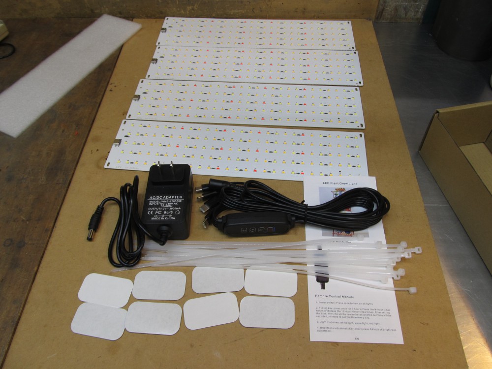 ですが、写真のとおりLEDパネルの状態で販売されていますので、このままでは使えません。 さっそく端材をつかってライトスタンドの作成にかかります。