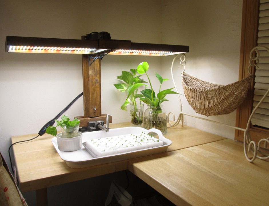 「室内で日当たりがよくないのも一因だろう」と植物育成用LEDを購入。 バジルは日照を好むらしい・・・。