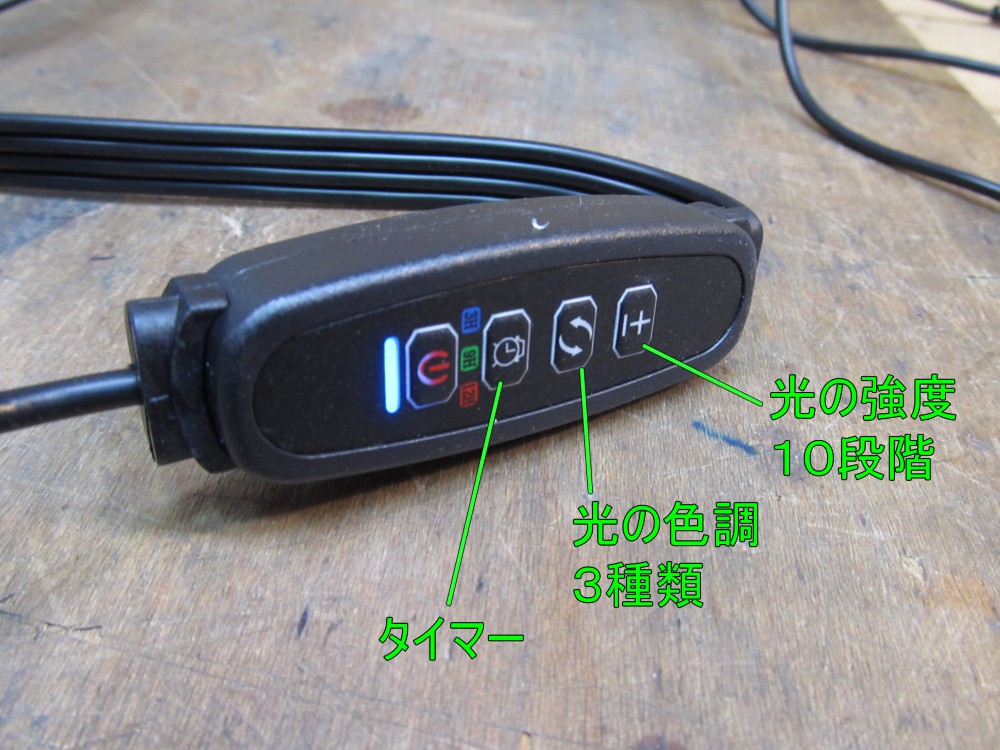 光の色調は3種類。 白色(昼間っぽい)、黄色、オレンジ(夕日っぽい)を選べます。