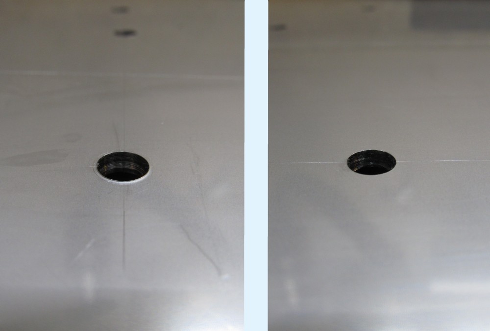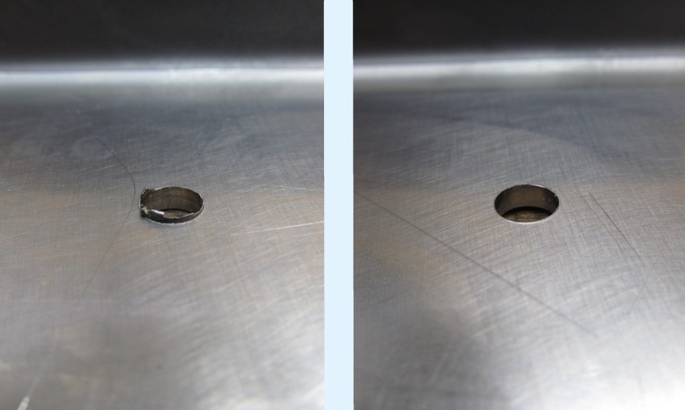 研磨前、研磨後の穴の様子をご覧ください。