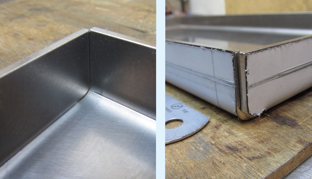 曲げ加工のRに合わせて接する面も加工されており「辺がピッタリ」でございます。 ありがたい!