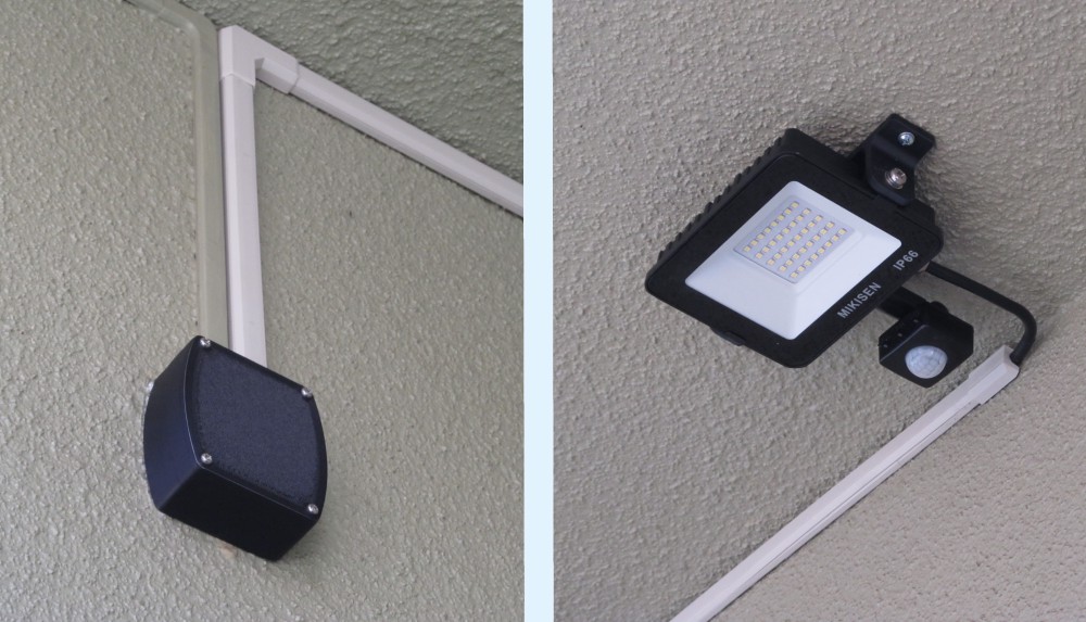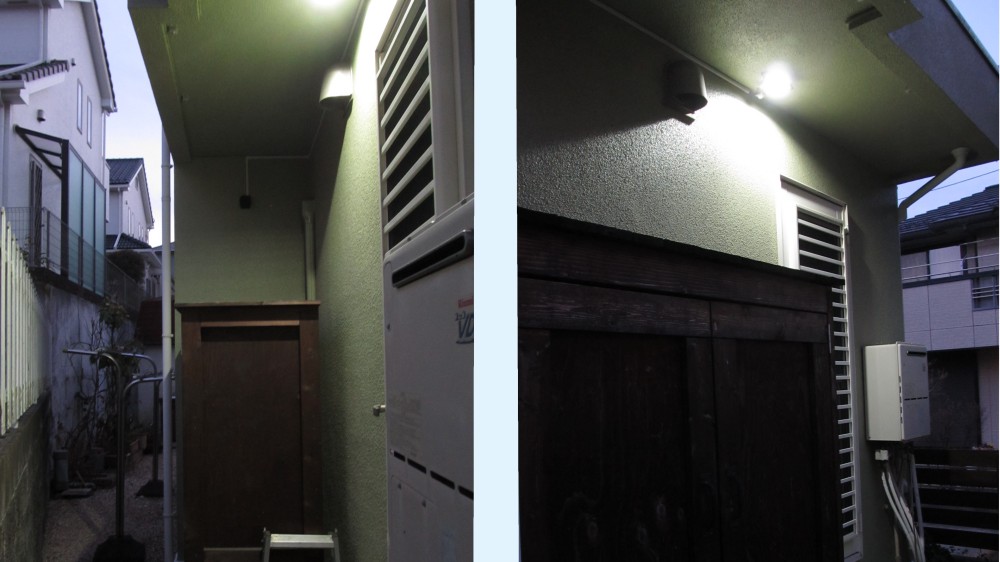 (写真では奥の白いセンサーライトとくっついているように見えますが無関係です。)